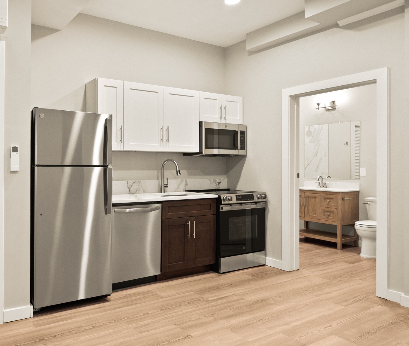 Choose from brand new studio, 2- and 3-bedroom apartments. Every layout includes spacious closets, gourmet kitchens, tall 10 ft ceilings, tons of windows and modern bathrooms.